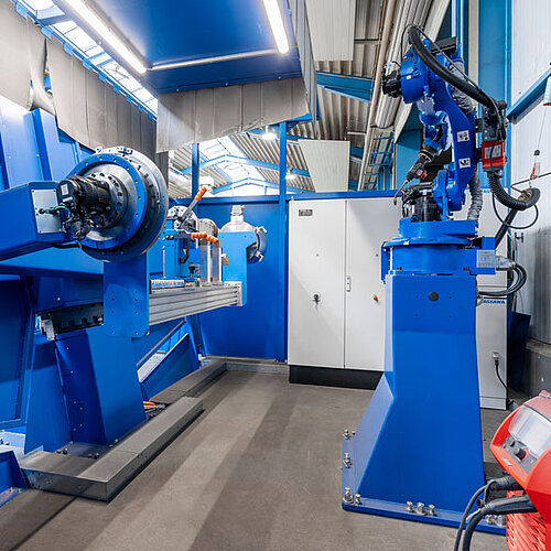 Voll automatisiert und genau auf Ihre Produkte abgestimmt – unsere Roboterschweißanlagen arbeiten präzise, schnell und mit hoher Wiederholgenauigkeit. Zusätzlich entwickelt und baut unser Team Vorrichtungen und Sondermaschinen für den optimalen Schweißprozess auch beim Widerstandsschweißen.